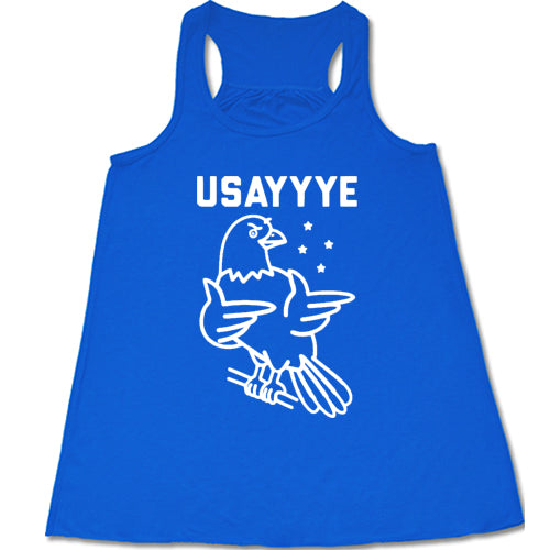 coral tank with saying "usayyye" and an eagle in white