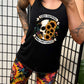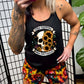 a black racerback shirt that has a skull and flower graphic with the quote "Kinda Emotional Kinda Emotionless" on it