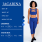 Model's measurements of 44 inch bust, 40.5 inch waist, 49 inch hips, and height of 6 foot. She is wearing a size xx-large in our leggings