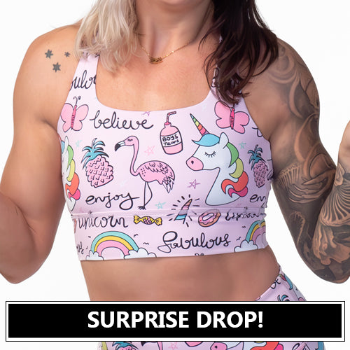 Introducing our New Longline Bra! This sports bra gives you the support... without the squeeze! We've extended the length to provide extra coverage, so it can double as a top with your CVG leggings! Matches our Unicorn Leggings perfectly!