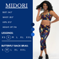 Model’s measurements of 38” bust, 31.5” waist, 47.5” hips and height of 5 ft 7 inches. She is wearing a size large in our leggings and a size large in our butterfly back bras