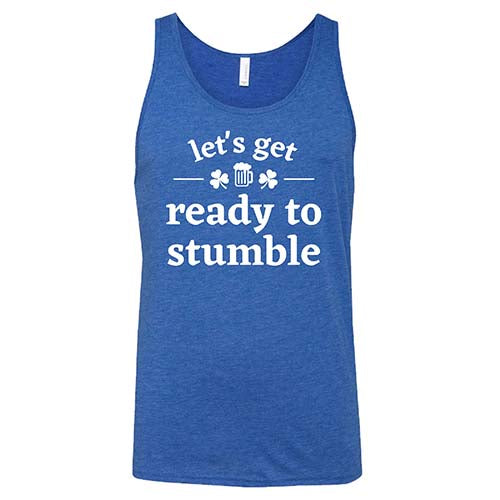 blue unisex shirt with the saying "let's get ready to stumble" on it in white
