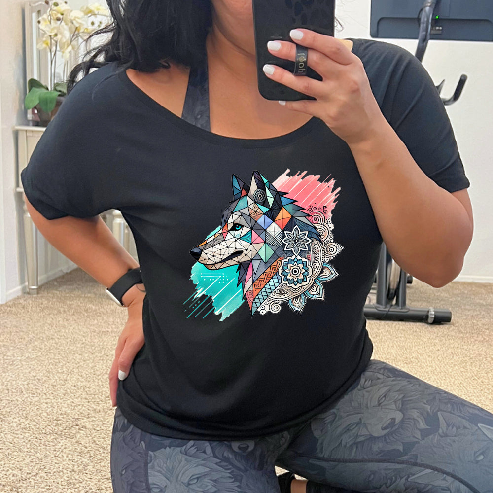 This new Mosaic Wolf Slouchy Tee redefines casual comfort! Its off-the-shoulder design and super-soft fabric make it the ultimate relaxed fit. Lookin' good never felt so good!