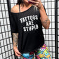 This new Tattoos Are Stupid Slouchy Tee redefines casual comfort! Its off-the-shoulder design and super-soft fabric make it the ultimate relaxed fit. Lookin' good never felt so good!