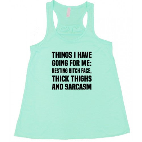 Things I Have Going For Me: Resting Bitch Face, Thick Thighs & Sarcasm Shirt