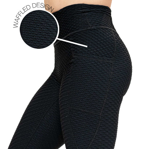 Black Athlete Armor Leggings bring a sculpted, tactical edge to training, pairing a sleek silhouette with a bold, high‑texture waffle pattern that feels powerful in motion.