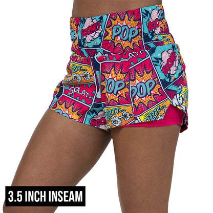 5.5 inch inseam pop art inspired shorts