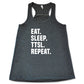 Shop our Eat. Sleep. TTSL. Repeat. Tank Top.  Affordable, fitness gym clothes for all types of fitness.  For anyone who goes hard in the gym and has a great sense of humor.