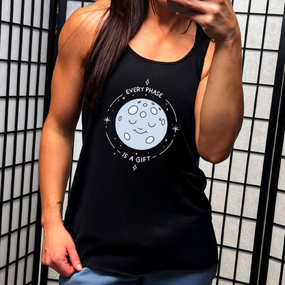 Shop our Every Phase Is a Gift Tank Top.  Affordable, fitness gym clothes for all types of fitness.  For anyone who goes hard in the gym.