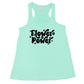 This design is available in a flowy racerback tank top. This is a great option for working out in.  Choose from 8 different color options.