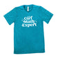 Teal colored shirt that says "Girl Math Expert"