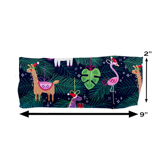 holiday ornament patterned headband measured at 2 inches by 9 inches
