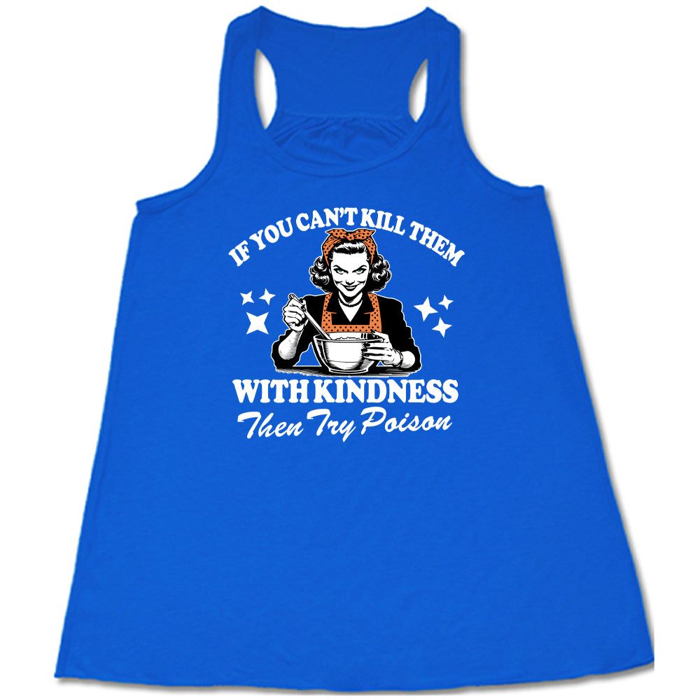 blue shirt with the text "If You Can't Kill Them With Kindness Then Try Poison" on it