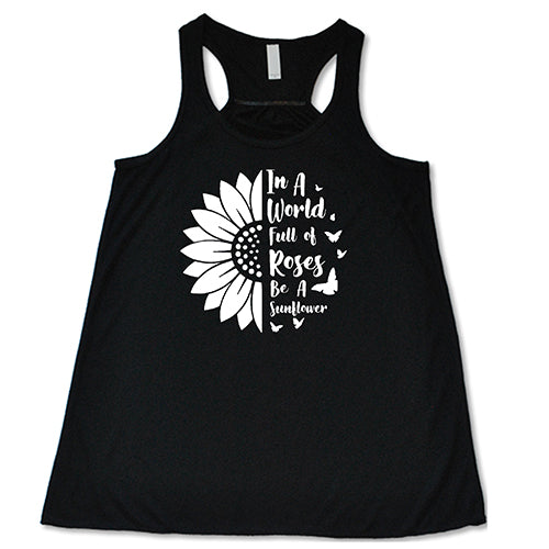 Shop our In A World Full Of Roses Be A Sunflower shirt. Affordable, funny shirt for all types of fitness.