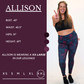 Model’s measurements of 32” bust, 28” waist, 37” hips and height of 5 ft 5 inches. She is wearing a size extra small in our leggings