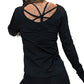 back design of a black long sleeve shirt