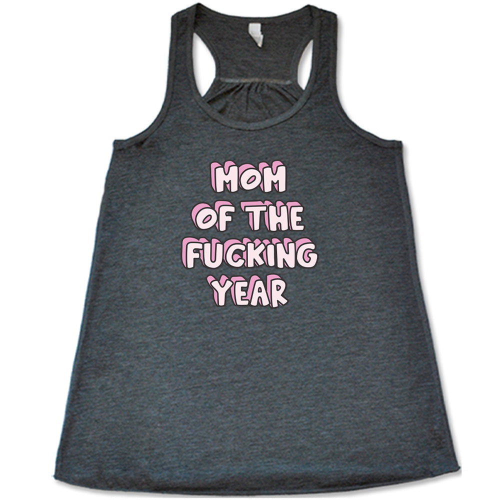 Grey colored flowy tank with a graphic on it that says "Mom of the Fucking Year"