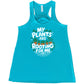 Teal colored flowy tank with a potted plants and roots graphic on it that says "My Plants Are Rooting For Me"