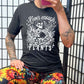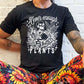 black unisex shirt with the saying "Never Enough Plants" and skeleton graphic on it in white