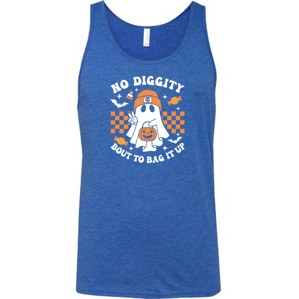 blue shirt with the text "No Diggity Bout To Bag It Up"