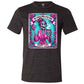black unisex shirt with a colorful blue and pink skull graphic on it with the quote "the overstimulated mom life" on it