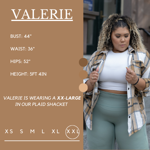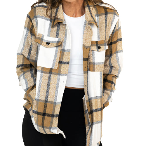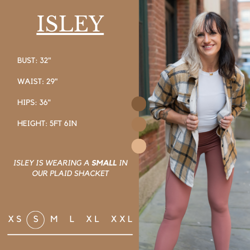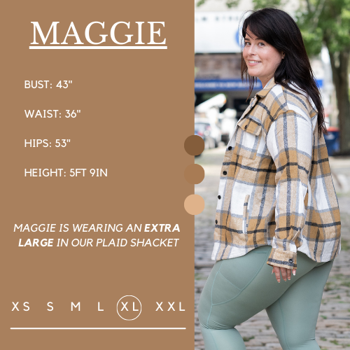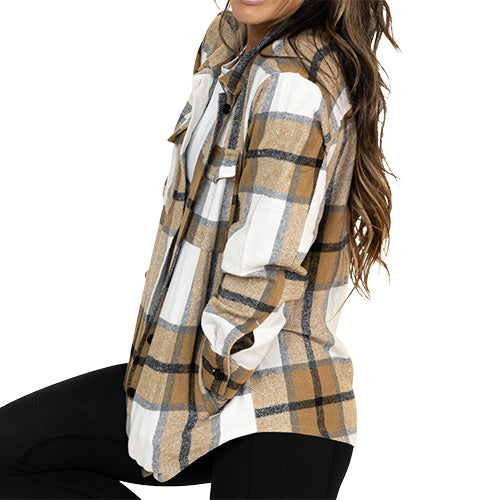 Elevate your style with our new plaid shacket.  This versatile piece effortlessly combines the classic appeal of a plaid shirt with the warmth and coziness of a jacket - this is a must-have in your fall/winter wardrobe!