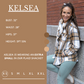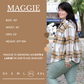 Model’s measurements of 35.5” bust, 30.75” waist, 38” hips and height of 5 ft 3 inches. She is wearing a size medium in our shacket