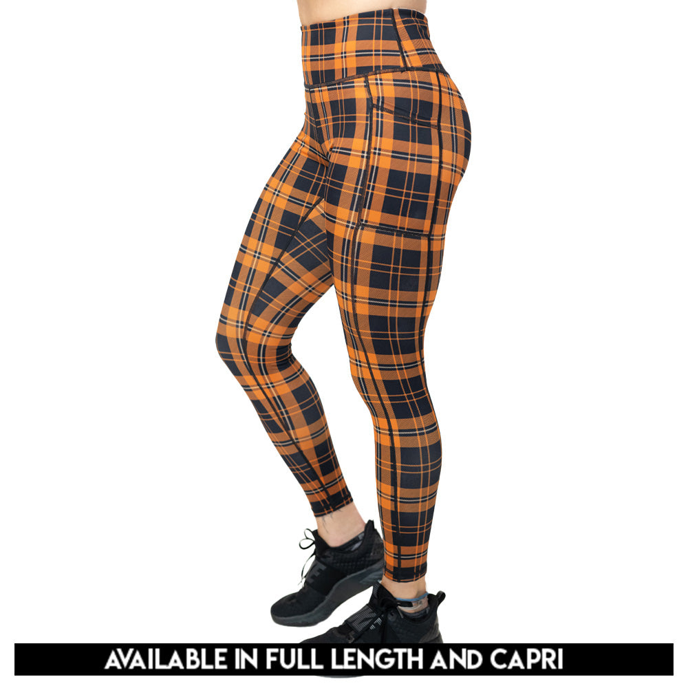 Shop our Pumpkin Patch Plaid Leggings! High-quality, full-length and capri leggings for all types of fitness.