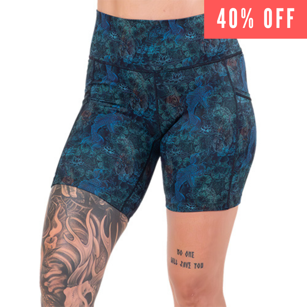 Shop our Don't Be Koi workout shorts. We took our new and improved shorts design and pulled out this awesome design for an awesome look! High-quality, fun gym shorts for all types of fitness that stay in place no matter what you're doing.